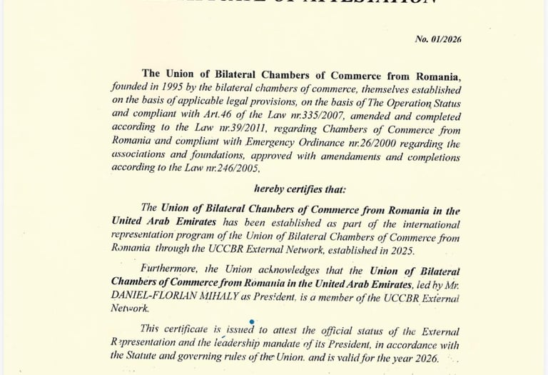 Bridging Romanian and Emirati businesses with tailored support.